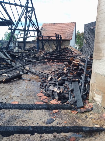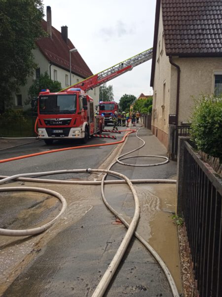 Am 12.06.2021 wurden wir um 13:23 Uhr von der Leitstelle zu einem B4 ( Brand Stall/Scheune ) nach Schönberg alarmiert. Bereits auf der Anfahrt wurde uns mitgeteilt, dass wir eine Schlauchleitung von einem 80 Kubikmeter Löschwasserbehälter, zur Einsatzstelle legen mussten. Wir versorgten das TLF 4000 der Feuerwehr Lauf a. d. Pegnitz. Dabei kamen 16 B Schläuche und unsere TS8 zum Einsatz. Nach gut 3 Stunden konnten wir von der Einsatzstelle wieder Abrücken und stellten unsere Einsatzbereitschaft wieder her. Dies dauerte auch nochmal 1 Stunde.