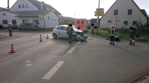 Am Freitag den 28.10.22 wurden wir um 10:40 Uhr an unsere Hauptstraße zu einem Verkehrsunfall alarmiert.