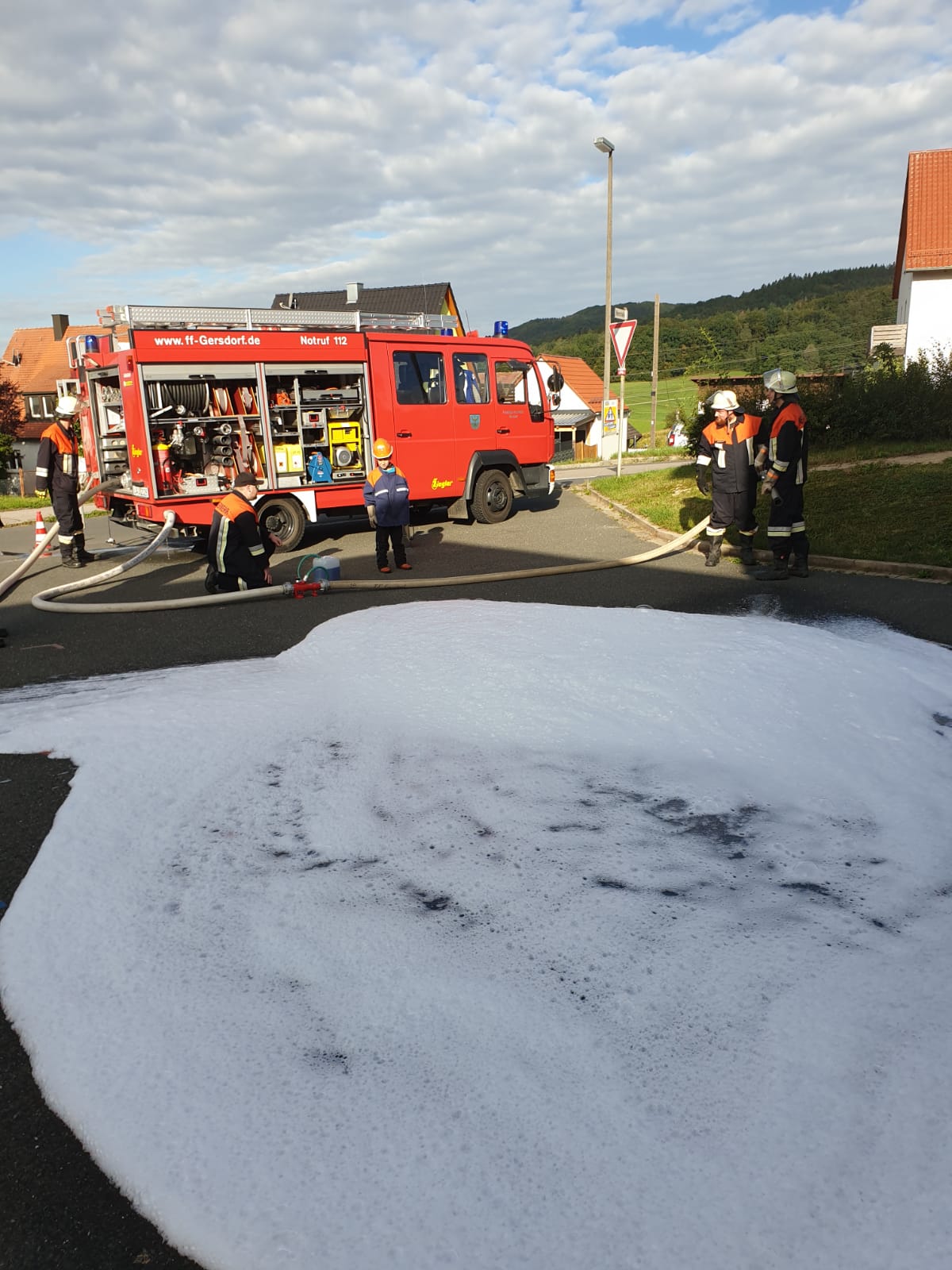 Am 06.09.2020 hat die Gruppe 4 der FFW Gersdorf eine Übung mit Schaum abgehalten. Hierfür wurde statt Schaummittel, Spülmittel verwendet um die Umwelt zu schonen.